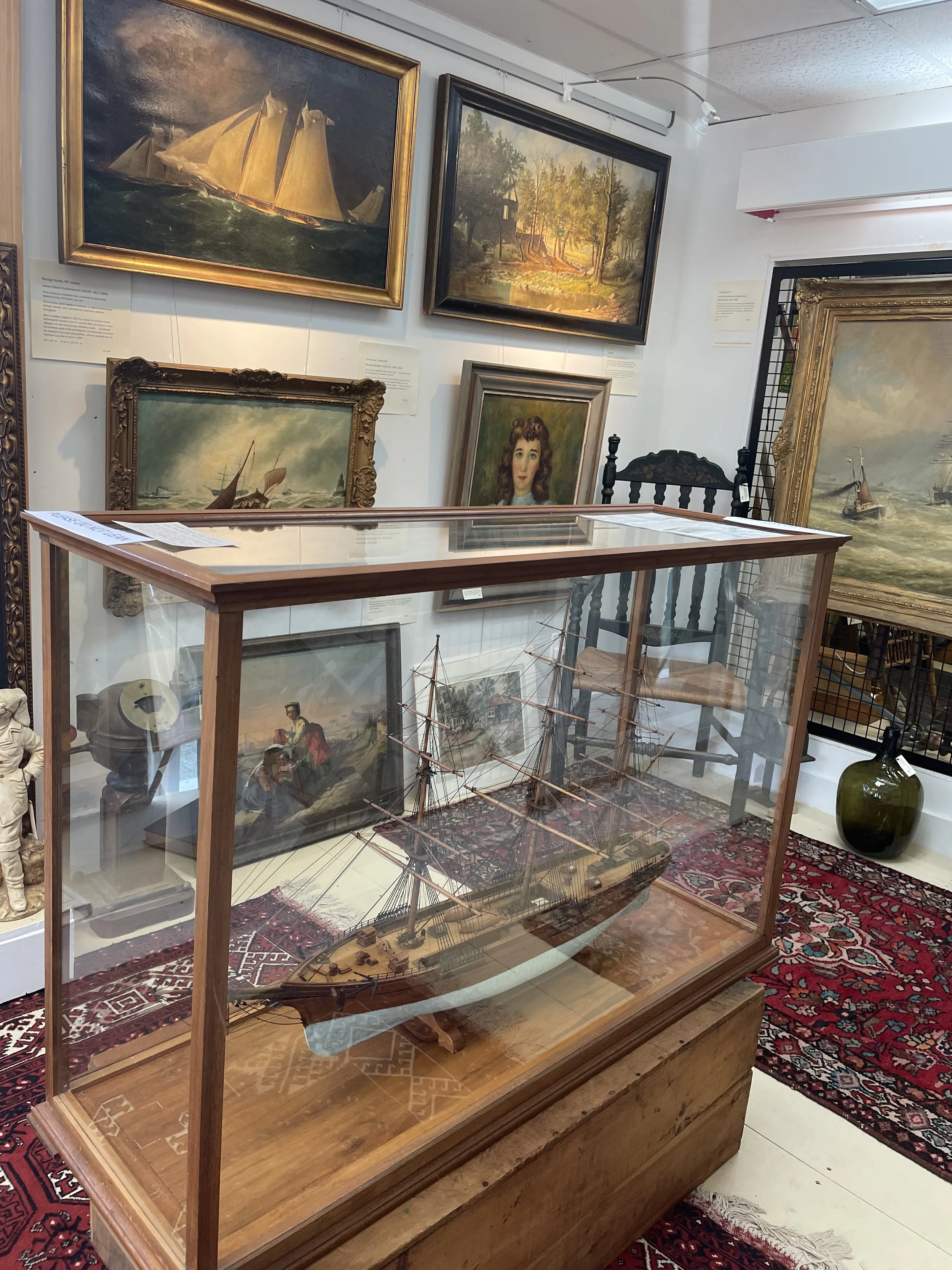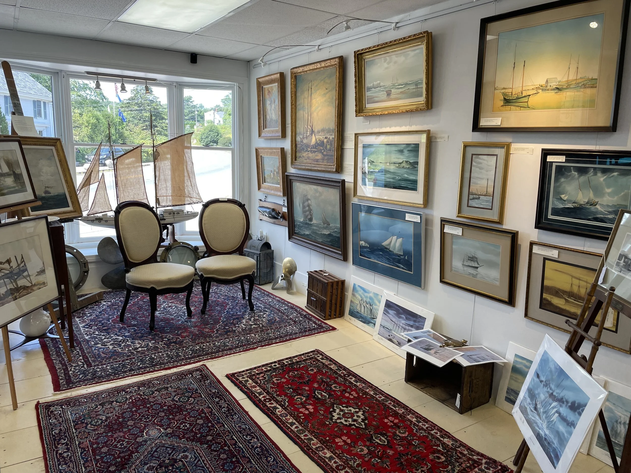 East Boothbay Trading Co. is represented by the husband and wife team of Tony and Laura de Haas. Tony and Laura are residents of East Boothbay, Maine where they enjoy sailing, pulling lobster traps, fishing, and collecting and researching antiques. Much of their collection follows a nautical theme including ship’s bell clocks, marine art, scrimshawn whales’ teeth, oil and watercolor paintings by local artists and much more. Beyond the coastal motif, Tony and Laura often find the rare, one-of-a-kind pieces that are so often sought after by antiques enthusiasts. British craftsmanship in sterling silver and porcelains are particular favorites. To see the latest in their collection shop the website, visit the social media sites, or browse the shop in East Boothbay, Maine. You can also visit East Boothbay Trading Co. at Wiscasset Antiques Mall, Iron Horse Antiques, and Fairfield Antiques Mall. Tony and Laura also take their unique collection on the road. Find information on upcoming shows up and down the East Coast by following on Instagram or checking here at eastboothbaytrading.com.